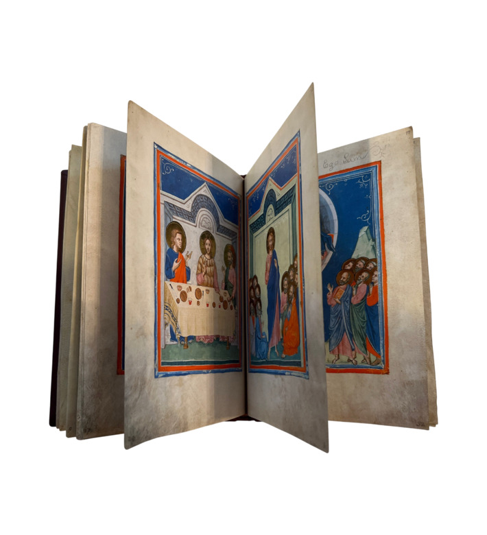 Pacino di Bonaguidas Buch der Bilder zählt zu den zentralen Werken der florentinischen Buchkunst des Trecento. Die um 1320 entstandene Handschrift überträgt die neuen malerischen Entwicklungen der Zeit in das Medium der Miniatur und entfaltet mit intensiven Farben und feinem Goldgrund eine eindringliche Bildfolge zu den Szenen des Lebens Christi. Das leuchtende Blau der Hintergründe prägt die Wirkung des Werkes und verleiht den Darstellungen eine besondere Strahlkraft.