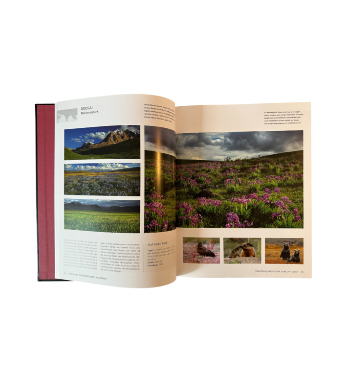 Jeder Band widmet sich einer bestimmten Region: Südeuropa, Australien, West- und Mitteleuropa, Nordamerika, Asien, Afrika, Südamerika, Nordeuropa, der Nahe Osten, Arktis und Antarktis, die Inselwelten sowie die Ozeane. Zusammen entsteht eine visuelle Weltreise durch Natur- und Biosphärenreservate, von uralten Wäldern bis zu majestätischen Vulkanen, von tropischen Küsten bis zu ewigen Eislandschaften.