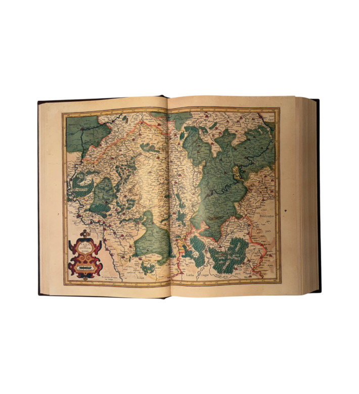 Gerardus Mercator (1512–1594), Universalgelehrter und „Ptolemäus seiner Zeit“, schuf mit seinem Atlas sive Cosmographicae meditationes de fabrica mundi et fabricati figura das erste Kartenwerk, das den Namen „Atlas“ trug. Postum 1595 von seinem Sohn Rumold veröffentlicht, enthält es 57 doppelseitige Kupferstiche, die die Welt, Kontinente und Länder in bis dahin unerreichter Präzision darstellen. Mercators berühmte Projektion, 1569 erstmals eingeführt, revolutionierte die Navigation durch ihre winkeltreue Darstellung. Der Atlas verbindet wissenschaftliche Exaktheit mit Renaissance-Ästhetik: kolorierte Karten, kunstvolle Titelblätter sowie maritime und landschaftliche Details machen das Werk zu einem Meisterstück der Verbindung von Kunst und Wissenschaft. Zeitgenossen wie Nachwelt sahen in Mercator den Begründer der modernen Geographie. Sein Atlas veränderte das mittelalterliche Weltbild grundlegend und blieb über Jahrhunderte das Referenzwerk für Forscher, Entdecker und Herrscher in ganz Europa.